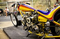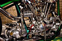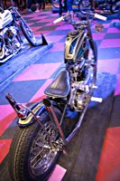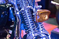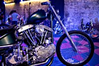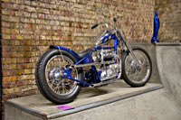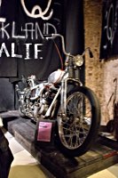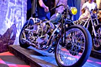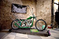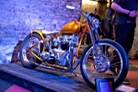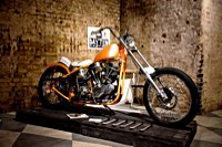 of some big names of chopper building having been invited: Max Schaaf, USA, of 4Q, Ryan Grossman of Vintage Dreams, USA, Cycle Zombies, USA, John Copeland, USA, Andy of Flying Choppers, Finland … The organizers must have rounded up all Knuckleheads in the British Isles, stylishly framed by Panheads and Shovels, Brit and Japanese bikes.