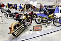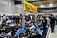 Woe to the man who has his own exhibitor’s stand and can’t move to check out the hardware. Torture! Pain! So there’s even less time to give the hundreds of motorcycles a good hard look. Which is cruel, ’cos what’s been assembled here has even the jaded eyes of our very own Nobbi san grow to the size of Pan covers. The highest density of Knuckleheads ever (OK, except, maybe, for the years between 1936 and ’47, in the Milwaukee Factory yard).