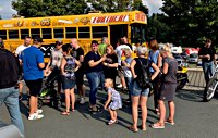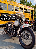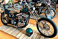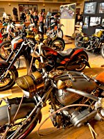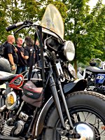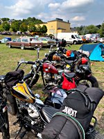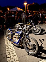 of the biker's calendar, and the Customizers East kept working hard at having fun: drag racing on an old air field, sitting round a good old campfire, checking out (and wrenching) customized Harleys. Now they had the 2nd "Custom Stage" in Hirschberg/Saale with a full assortment of 2- and 4-wheelers: hot rods, muscle cars, low riders, choppers, bobbers, café racers. All these gems distributed between the show hall and the adjacent parking lot – loads to see and talk about for the 800 attending friends and guests. The weather was awesome, the campground cosy, and we'll be back with the magic „FURTHER!“ bus come the summer of ’21.