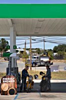 Had some refreshments in a roadside kitchen where chicken and dog greet each other with “¡Mañana!”. Topped up the fuel tanks (no gas next 100 miles, and a Sportster tank)