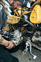 It was about time that we went for another test ride: a couple of our Wrecking Crew dudes are doing this year’s El Diablo Run. They start out from San Diego on our Panamericana proven rigid Panhead and our scramblerized late model Sporty. They want to find out how far the knobby Bates Baja tires will carry them, and how the PanAm 60 weight handles the expected high temperatures.