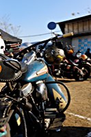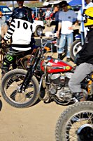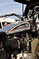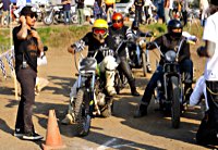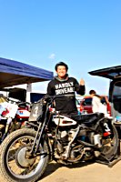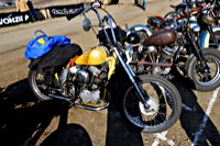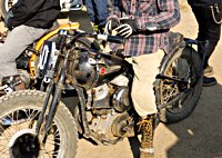 Speaking of brats: The race organizer was BratStyle – a not entirely unknown customizer to the aficionado – and they had reserved a bit of track in a big offroad park near Kawagoe in Saitama prefecture, 40 kilometers out of Tokyo. The sponsor’s list read as a who’s who of the best in this scene, and many of the fun loving drivers risked not only their bones but also their motorized treasures. Some 100 riders rolled up to the start line in these classes: Tank Shift, Choppers, Vintage Single, Vintage Twin, Hooligan, Woman Class, Open Class and Slow Race. The quality of the fine machines being roughed up on the track was awesome.