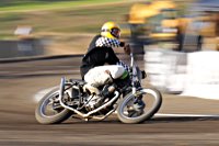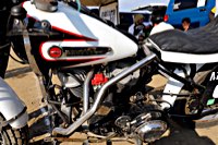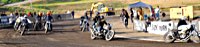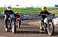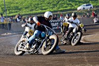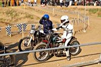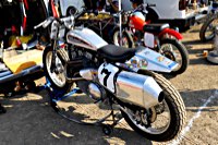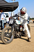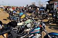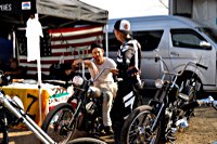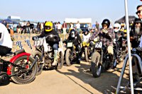 It’s a dirt track race with machines that in any other place would stay in the sheltered space of museums. Here the parking lot alone looked as if half of the Yokohama show bikes had been ridden here by their owners.