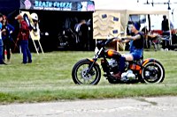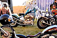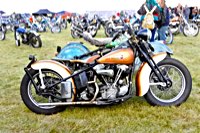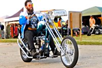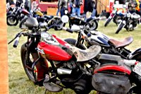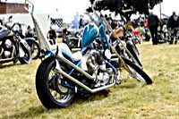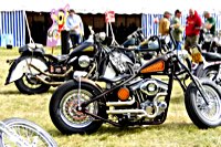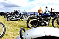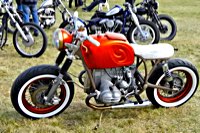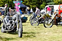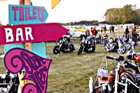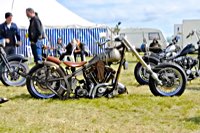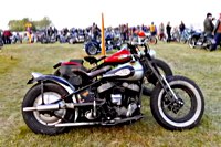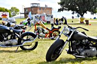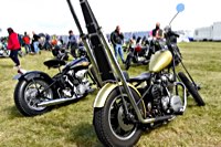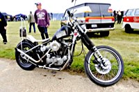 says it's time for the country roads. These Englishmen know how to do country. The Shovel rumbling merrily across meadows, fields and groves, passing inviting pubs and village greens until the destination, an abandoned airfield comes into view. Sprawling and derelict, with a museum at its core, and loads of old Harleys and Brit bikes sputtering, clunking and purring about. Talk about engines: The Trip Out's uniqueness is in its real bikes for real roads. No show queens here, every one of these beautifully built machines could be ridden right away. My personal favourite was no custom though, but a sweet Sixties barn find early Sportster with an original mileage of just 7.000 on the odometer. Beautifully rusted at the edges, a true Harley if ever there was one. There were upsweep pipes to seriously endanger incoming aircraft, vintage Indians (complete with engineer/home builder), early and late Brit bikes, bonkers Jap builds, beautiful Knucks and Pans, Shovels everywhere, Sporties galore. If you don't see the Harley of your dreams here, you have as much gasoline in your blood as a bucket of buttermilk.