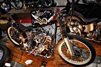 Masa-san took his first baby steps into custom building in a Kyoto bike shop, cutting his teeth on the inner workings of domestic makes. The study of old US chopper mags soon led him to realize that there was no way around Harleys, and he took his small family to the US of A. At "Phoenix Motorcycles" he honed his budding skills of dismantling, reassembling, and build quality. Inspiration paved his way that led him to meet Japanese custom legend Chica, who sharpened Siguhara’s outlook on Harleys, choppers, details, style and tech. He saw increasingly clearer what makes a good motorcycle. He also knew that at one point he had to make a stand of his own. While Chica drove his newly founded shop straight for the rush hour traffic of Bike Build Off TV, Masa-san chose a different lucky off ramp: