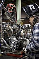 Not a retreat, a new start. He had brought a plan in his head to create his own world of singularly beautiful Harleys; a place, where the art of chopper building would be honoured, practised and passed on, an institution of custom culture: "Luck Motorcycles". Luck: a promise, an incentive, an aspiration.