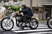 To celebrate the occasion, a big party was thrown. Threatened by rain, it proved a major success, right in the middle of Kyoto. From all over Japan builder friends arrived and threw themselves into the party with gusto, along many other fans of Luck MC, pushed through the night by DJs, beer, pin stripers, burgers, nachos, leather art ... not forgetting the many wild talks about Harleys, wrenching, gasoline, oil and miles spent on the road, and the many good wishes for many more fascinating combinations of steel and soul to come: Luck Motorcycles!