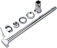 Star hub reproductions that are equipped with tapered roller bearings require a uniform 11/16” axle center part. Harley Davidson axles for Star hubs (all Knuckles and Pans, SV Big Twins 1937-1966, 750 twins 1937-1951 rear, 1966 Shovels) have a center part with only the first 1-1/4” measuring 11/16” while the rest is reduced in diameter. On this reduced diameter a 11/16” Timken bearing will not fit, of course. On the other hand, a uniform diameter goes very well alongside with OEM star hub bearing sleeves, as these sleeves only touch the axle on their initial 3/4”. (The other side is borne by the brake side spacer.) Slight modifications may be required if you notice excessive wheel sideplay.