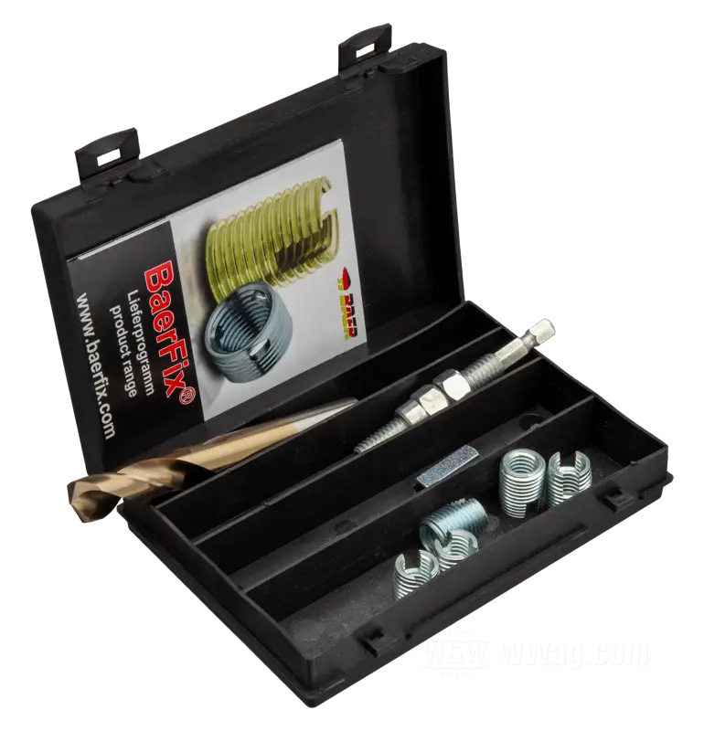 Repair kits for one thread size, respectively. Each kit includes a drill, installation tool and 5 BaerFix inserts.