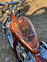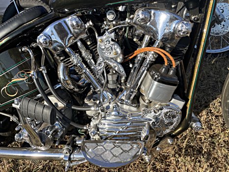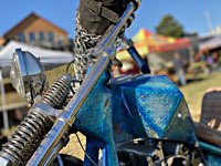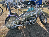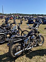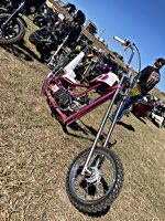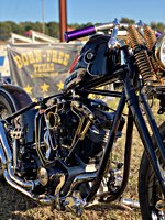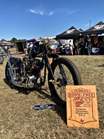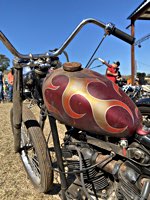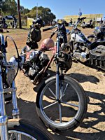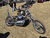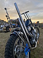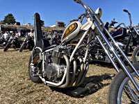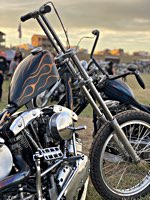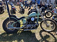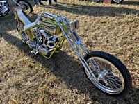 Here it's more like a bbq in the park with your best buddies. You roll in on your chop, and one of the group brings a pickup truck with all the heavy (and liquid) equipment. Arrive, set up your tent. Let everything else just happen. Food, hot coffee, showers, toilets, they have it all. They even have a bar. When you feel like it you take a stroll round the grounds, there's so much to see: the builders' list is longer than any far out custom front end. There are top notch builds in all conceivable stages of customization or stockification.