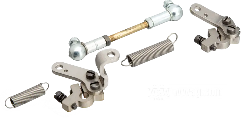 This kit comprises two levers, a ball end rod and springs to connect two Linkert carburetors in dual carb set-ups. Designed for pull-action throttle grips or spirals.