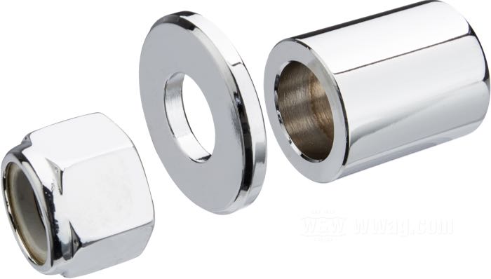 Chromed axle nuts spacer kits with all necessary components for Softail models from 1984-2017.