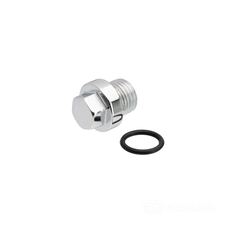 Chrome-plated plug as replacement for slotted oil screen plug, that is difficult to open most of the time.