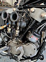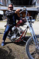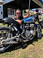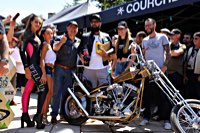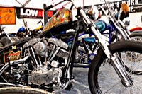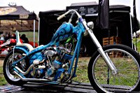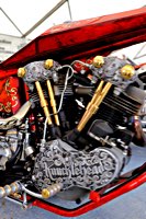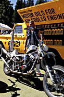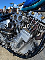 To make it worthwhile for one lucky winner, we brought along a brand new 96 cu in S&S motor to be given away, complete with carb and ignition system. It’s attracting a lot of longing glances, and accumulates a heavy coat of fingerprints on its polished rocker boxes while it’s sitting on the stage.