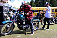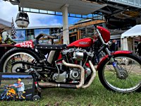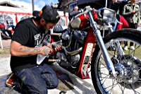 One of the runs is the Girls’ Run, with some 30 women riders participating, among them a high W&W content: Minako is driving a ’59 Sportster, Barbara has brought the yellow PanAm Sporty and Valerie is relying as usual on her trusty ’79 Shovel. On their return, there are drinks, presents for all and the long distance trophy for a lady from Uruguay. And off we all went into the second party night …