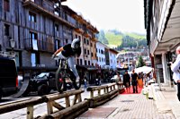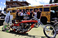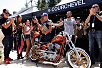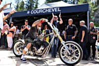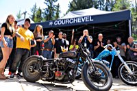 The venue is Courchevel, which is split up in to three levels, Courchevel 1550, Courchevel 1650 und Courchevel 1850, the numbers being the altitude above sea level in meters. Sure enough the Magic bus, the new PanAm Oil Chevy pickup truck and a few vintage Milwaukee two wheelers from the W&W stable grind and growl and clatter to the top at 1850 m.