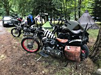The pine trees were shivering when the pack of Harleys rolled up to that hidden blockhouse deep in the Black Forest. A small circle of friends had asked a slightly larger circle of friends to their notoriously delirious decibel extravaganza … in short HRW. Erm, that’s supposed to mean Hard! Rocking! Weekend! The concept is in the name: Friday the electric guitars were screaming over the beergarden tables from canned recordings, later to be replaced by live bands, giving an even harder push to the wrenching talk.