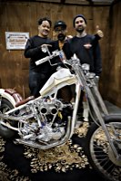 was on Evo engines this year, but it’s still the Knuckleheads, Pans, Shovels, and the odd Sportster that made our heart beat faster, not forgetting Japanese classics. And the great cars, the pinstriping, the scale models, and everything else that belongs to custom culture. Even the visitors joined in, cosplaying the vibe. Need we say more? OK, there was a pinup model contest, there were bands. All this for just 9 short hours! Not much time to choose the W&W Pick, which is the Harley that makes our hearts sing :) There were 20 hot contenders for our pick, but in the end we decided on Hammer Sycles’ Knucklehead Speed Bobber. A true sleeper in our eyes, outwardly humble, but with countless and invisible details such as the lightened flywheels for better throttle response, a subtly modified Hummer tank, to avoid hurting the frame, a dual carb setup with proprietary air horns, and, yes, sir! Bates Baja tyres equipped. The list goes on. Just as well that we brought a nice trophy, pinstriped by Boo, and presented in a never ending ceremony. So much good stuff, so many great bikes in Yokohama, at the Mooneyes Hot Rod Custom Show, the absolute pinnacle of the custom year 2023.