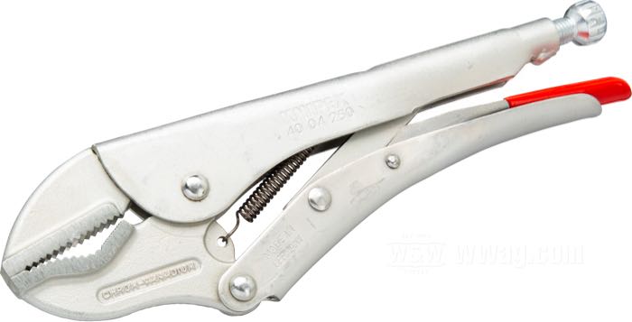 Every toolbox should contain one. They hold rounded nuts and bolts, axles, cables, springs, or you name it. These grip pliers by Knipex are heavy duty and will give you years of service. They feature an adjustment screw and release lever. With their toggle lever action they provide very high clamping pressure. The body is made from high-strength rolled steel, the gripping jaws are forged from chrome vanadium electric steel.