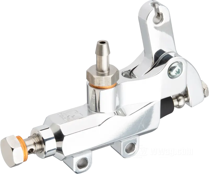 This master cylinder mounts almost anywhere on the bike where it can be remotely activated by a control cable or pull rod. This gives the custom bike builder numerous possibilities when hiding handlebar or foot control components.