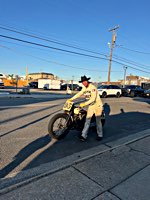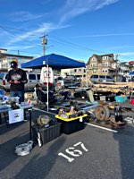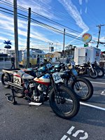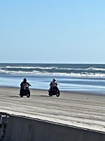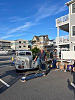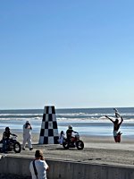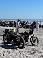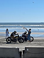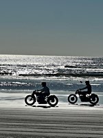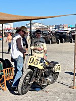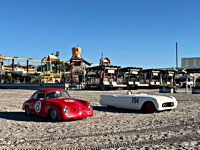 The Race Of Gentlemen: Old clunkers on two and four wheels against wet sand on the beach at Wildwood, New Jersey.