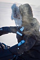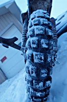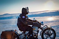WOLFGANG: "It felt sometimes like an off-road bike on the beach. Gues that was due to the long metal spikes on the tires. The cracks in the ice running in your driving direction are tricky. If the front tire slips into one of those, the bike just tries to follow the crack. Got to fight your way out of these. Other than that, driving was fine."However, each of them gets his share of testing the windchill at minus 35 degrees Celsius and 60 k/h.