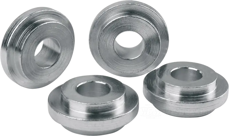 These stepped washers/spacers replace the stock rubber mounts of your risers if rigid handlebar mounting is desired.