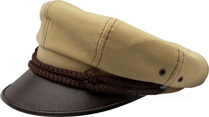 These rider caps were indispensible part of the biker outfit from the 1930s well into the 1950s. Even the Wild One in the legendary rebel movie of the same name had one. Since generations the Sterkowski company of Warsaw/Poland manufactures them after period patterns, i.e. pure cotton crown part with viscose lining, leather visor and sweatband, ventilation eyelets and decorative double cord. A very stylish alternative to the usual base cap.