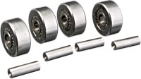 In the air-cooled V-Twin engines from Harley-Davidson, roller tappets have performed this task since the side valve engines of 1929, with a few exceptions. The tappets are perpendicular to the axis of the camshaft and the movement is transmitted directly. The tappets are guided in separate components with precise bores, the tappet guides. These guides can be replaced separately in the event of wear. On models without hydraulic valve lash adjustment, the tappets have adjusting screws for the valve lash. On the tappets of the large Twins from 1952 onwards and the Sportster from 1986 onwards, the tappets house the hydraulic compensation units for the valve clearance.