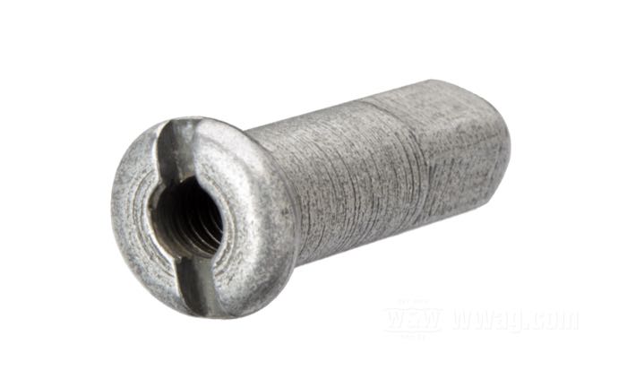 Correct 1930-1959 type spoke nipples for your next restoration project. No more points deductions during AMCA judging for incorrect nipples. These have the accurate dimensions with short, machine cut squares for the spoke wrench. These nipples work with original 1960-up spokes or aftermarket spokes with 32-pitch threads.