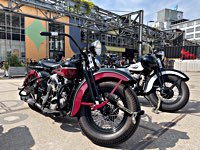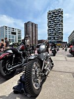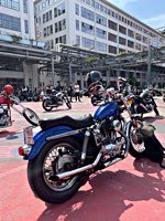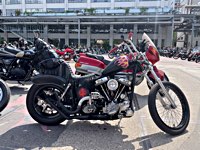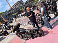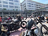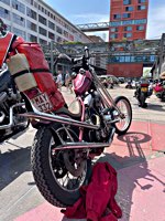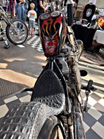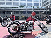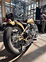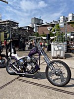 community gets together, the parking lot was also worth a good, long walk. The open-air parking is huge, and many far out machines had been ridden in. From the all out racing bike to the gorgeous (swoon) Knucklehead everything was to be seen - including old acquaintances, ready to have a friendly chat and a beer or two.