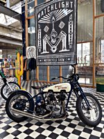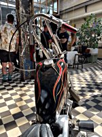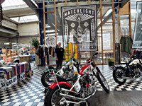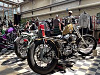of being part of this show with a strong Harley-Davidson bias. Our two MexiCalifornian-inspired Shovelheads were parked among great custom bikes, chunky old electrical switchboards, stylish fashion booths, engraving artists, photographers, and tattoo artists. The walls were filled with chopper life photography and illustrations that would adorn any T-shirt - and if you had the time and the peace and quiet, you could discover our steel whisperer and Baja Twin builder Mattias "Le Beef" Andersson between all the colourful hustle and bustle and the many relaxed visitors, and ask him about all the details of the Baja Twins.