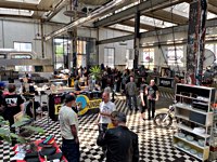 The matchsticks and light bulbs are long gone. In came the fancy high-rises, the condos, the creatives, the artists, the stores, the skaters, the BMXers, the boulderers … and, for one day only, the two-wheelers. Painstakingly curated bikes had been fork-lifted and parked on the bel étage of an impressive former production building where restaurant tables usually stand.