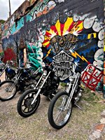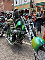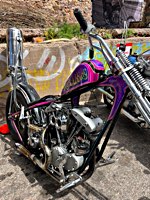 where the elusive element chopperite was discovered. Scientifically unexplained, reforming once a year into eye popping, self propelled lumps of metal, with long hand rails and equally long hollow tubes, emanating burbling, chattering noises and the smell of burning hydrocarbons. The whole place is flooded with dudes and dudettes, motors and music, and the code word "The Prowl" can be heard half whispered in dark corners.