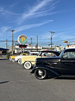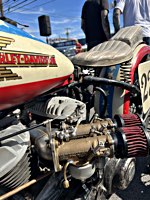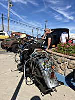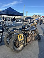 this time warp on the short ride from the motel to the Jersey Girl Bar for a first acclimatising drink. Along the way, the historic vibes got stronger by the mile: the parking lot was littered with historic V8 flatheads and four bangers, OHV engines tolerated (some), everywhere there was unstrapping and unloading going on, the swap meet stalls were getting set up, and the first inline flatties got fired up to see if they were still working :)