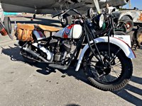 in Riverside, Ca., not far from Los Angeles, to witness some serious TROGing on two and four wheels. Nothing is left to chance at T.R.O.G. events. There are seemingly endless regulations, pertaining to the correct use of about everything, from forks, brakes, tank emblems, tyres, gear shifting equipment – everything to be as period correct, stripped down for racing and built pre 1957 as is humanely possible. And as far away from being street legal as is conceivable. This being mainly a car event, Milwaukee hardware was in less than abundant supply, but was augmented by a few plucky Indian motocycles.