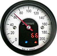 Hell of a thing, it was all the hype in the 1990s when MMB released the first mechanical speedometers and tachometers with a case diameter of 48 mm. Somehow they had managed to pack the whole drive train into that mini case. In the meantime, instruments of this size have become a quasi-standard in customizing. They are available with a classic mechanical drive and an electronic version for connection to speed sensors. The latter have a servomotor that moves the pointer. Pointer? Yep, all these little instruments display analog. That's also the secret why there are no smaller round instruments yet: readability at a glance would suffer.
