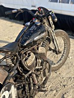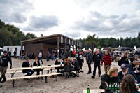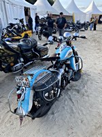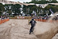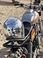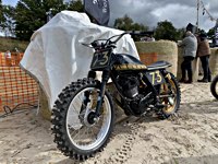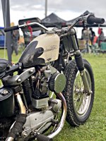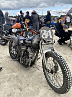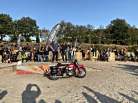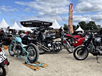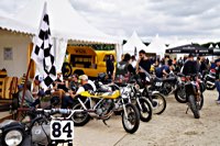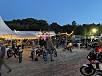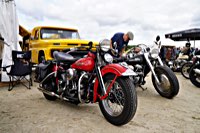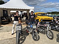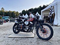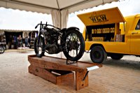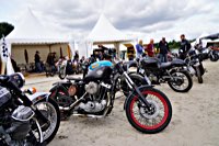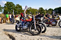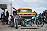of drink and sustenance, there’s a very extensive menu of motorbikes of most diverse brands and concepts to take in: enduro bikes, flat trackers, choppers, MV Agustas, Yamahas, Hondas, BMWs and, surprise!: Harleys - e.g. the Wrecking Crew JD board tracker, which is easy to find, ’cos we have parked it by our big yellow Chevy PanAm Oils truck. Talking about well oiled: the vibes were as smooth as PanAm’s 20W-50, all weekend long. Not least thanks to the perfect organisation.