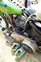 It’s Jacky Hofer of Harleyluja, Wolfegg. His fast Panhead bobber has all the other eat sand. We suspect a superior intake of beer the night before.