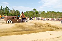 Our test runs have given us some totally unjustified confidence. They use a knockout system here to find out who’s number one. 25 fearless scooter pilots from hell are battling it out, with no regard for man or machine. The runs are spectacular. When one guy tries to plough through the sand, the next one surfs the rutted track. Every start adds a pair of meandering canyons to the already heavily grooved surface and increases the unpredictability of steering inputs. Who’ll keep their nerve down to the finish?