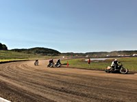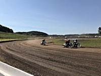 What better birthday present for a company devoted to speed like this one than a real life flat track in the company grounds in Viola, Wisconsin. Come Saturday, birthday guests had a chance to have a go at flat tracking, after some basic instruction where necessary.