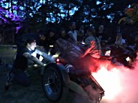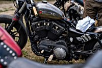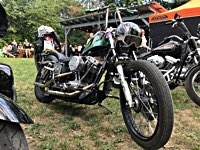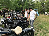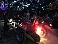 con el aceite circulando por las líneas de lubricaciíon, el filtro, el depósito y todo el circuito, ¿porqué no hacer unas quemaditas de goma? Una idea que muchos no pudieron quitarse de la cabeza. Con fiera resolución e inquebrantable voluntad de destruir muchos de los neumáticos presentes, fundieron hasta el flanco sus ruedas. Incluso un Panhead llegó a meter la tercera, y el tipo de una Goldwing, dispuesto a no ser superado, frió su rueda hasta la llanta.