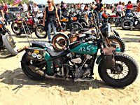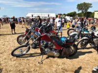 Dejar que el sol precaliente una bonita y lisa playa veneciana hasta alcanzar la temperatura ideal para que los invitados puedan rodar con sus motos. Habrán unos 300 moteros y pilotos rebozando sus motos y coches de arena a todo gas atacando el cuarto de milla sin cuartel. De todos modos, este año había retricciones a las antiguedades de motores y chasis: Vehículos sólo anteriores a 1960 y motores anteriores a 1979. Sólo neumáticos de calle. Esta normativa mantenía las velocidades en límites seguros, pero sin detrimento de la diversión.