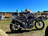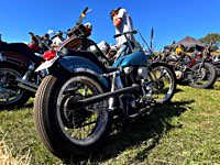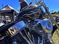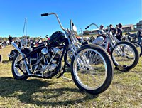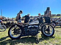Empezando el viernes, la fiesta no cesó durante tres contundentes días, ni en el mercadillo del capítulo Cherokee de la AMCA, ni en la carpa de W&W donde estuvimos charlando con colegas hasta que se nos hacían las tantas, incluidos algunos de los constructores invitados al próximo Born Free LA en 2024, que ya están trabajando en las listas de piezas para sus obras. El Born Free Texas fue tan grande y bullicioso como relajado y agradable. Y la variedad de motos era delirante: Pues ¿dónde podrías encontrar choppers, hallazgos de granero, motos de serie, baggers y máquinas de club tan mezcladas?