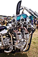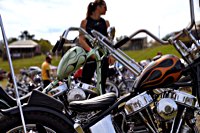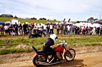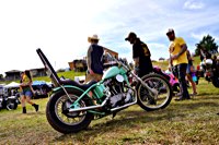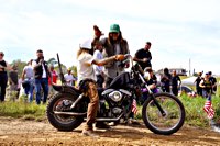 Yeehaw!!! Todo es más grande en Texas! Y si hacía falta comprobarlo, la segunda edición de Born Free Texas lo demostró: Más días, más terreno, más acción, más de todo. Sólo para las bandas necesitaron un cartel independiente del de las atracciones: Muro de la muerte, carreras de flat track, carreras dirt drag, tenderetes de arte, ropa, lifestyle, accesorios, componentes (algunos los trajo una compañía llamada W&W Cycles), chiringuitos de comida, el enorme escenario Lone Star y por supuesto, The Bowl. Se trata de una depresión en Yellow Rose Canyon y era el lugar para aparcar una gran cantidad de Harleys, y Harleys, Harleys y más Harleys aún. Si tenías el Grass Pass. Si llegabas temprano, tenías la oportunidad de coger un sitio para tu tienda cerca de la acción.