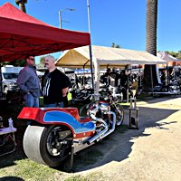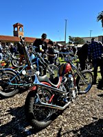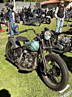 Pero como no estamos en la industria del arte, el día en los terrenos de Ventura fue bautizado como “A very special David Mann and Friends Motorcycle Art Exhibit, an All Brand Antique and Custom Motorcycle Show” (Una exhibición muy especial del arte motociclístico de David Mann y sus amigos, una concentración de todas las marcas antiguas y custom). Estaba lleno de motos, de modo que sumimos nuestros ojos en el maremágnum de interesantísimas máquinas aparcadas por todos lados.