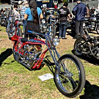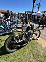 guay, pero también había muchas motos nuevas y muy especiales. Nada extraño con las 22 categorías diferentes que optaban a premio. Además de Chopper, Bobber y Antique, también había Radical Design, Rat Bike, Koolest Paint, Bagger, Metric, Dyna, FXR etc… Y por supuesto, el David Mann Memorial Award! Todos pasamos una tarde entre grandes personas, vendedores de todo, desde comida y bebida hasta puestos de arte, mercadillo, cerveza, bandas y no hay que olvidar el césped, las palmeras y la playa.