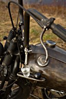 For this special edition the bars will be filled with 13 year old Cuban rum by retired „El Floridita“ bar keepers. The bars will be mounted to a stock 1937 Knucklehead and smuggled on a faithful replica of the „Granma“ to Mexico, with a stopover on Easter Island. From there, the bike (with bars) takes the Panamericana all the way to Tuktoyaktuk, NW territories, Canada. Here, the bars get taken off the Knuck and over to a 1973 AMF snowmobile. Providing the Bering straits are frozen over, the direct route to Ust Kamchatsk (Усть-Камчатск) is taken. Here our agent for Eastern Europe, Krasnaja Veetwinkowa takes over and transports the bars in the sidecar of her Harley (the vintage matches the proof of the rum) to the Finnish border town of Vartiuksen rajanylityspaikka, where the Bates Bar Hanger will be handed over by the local mayor during a little ceremony.