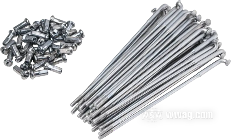 Las longitudes de los radios son adecuadas para un entramado simétrico de llantas profundas de los diámetros indicados. Cada kit contiene 40 radios de la misma longitud y 40 cabecillas.