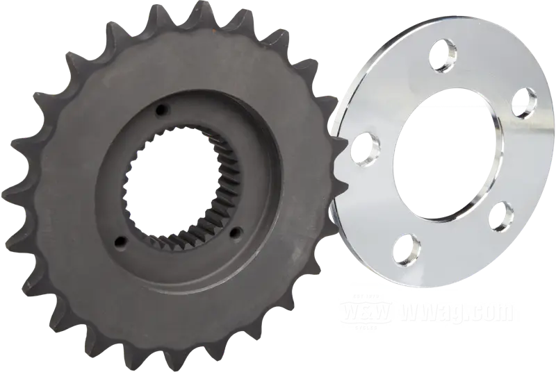 Permite la instalación de un neumático 150 convirtiendo la transmisión de correa a transmisión por cadena. También facilita el cambio de la relación de transmisión final convirtiendo la correa secundaria original en transmisión por cadena. Junto con nuestro espaciador de piñón 77-556, estos kits también se pueden utilizar en Sportsters de 5 velocidades. Deben utilizarse con coronas traseros de 4 velocidades de 1973-85.